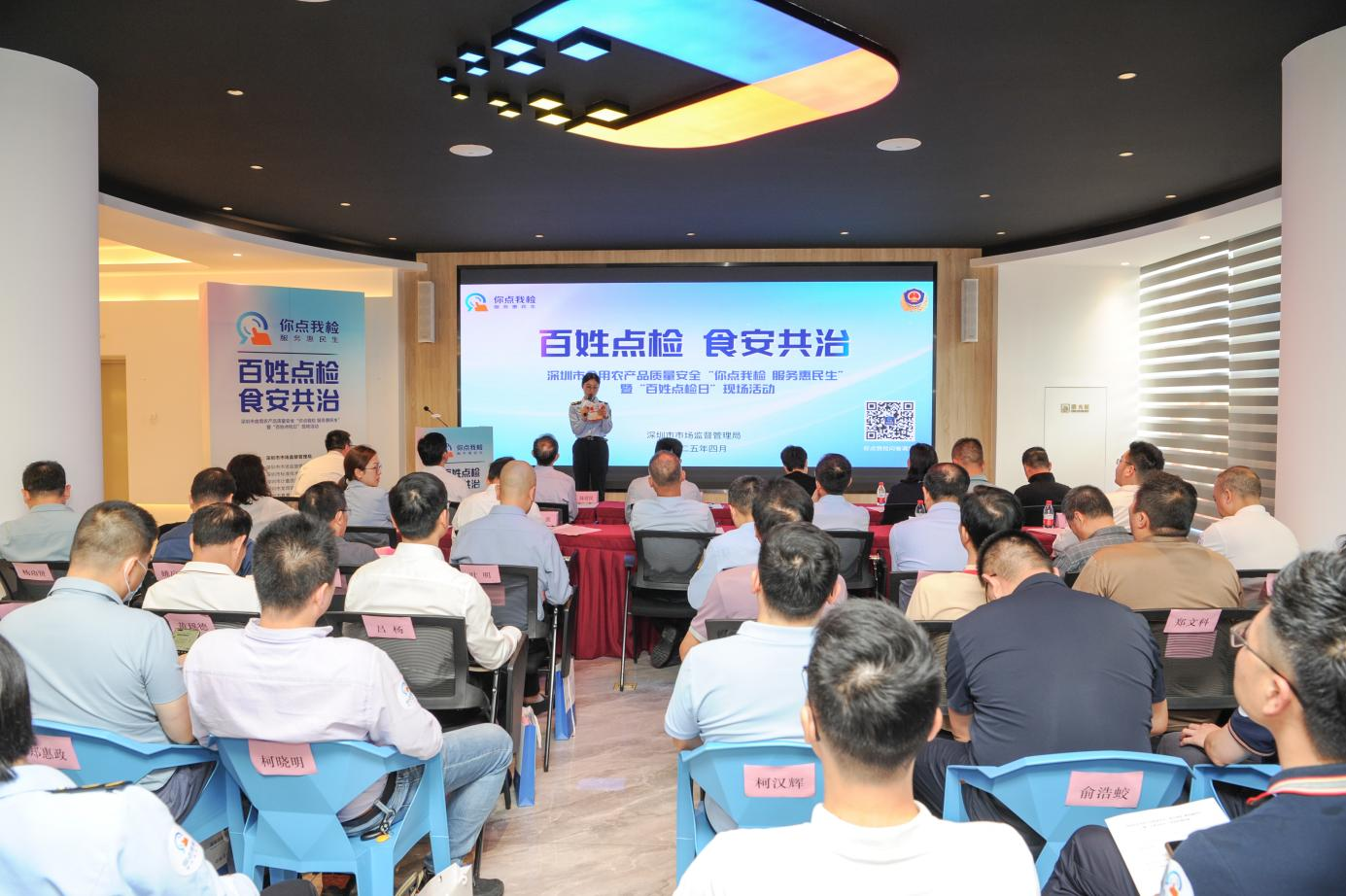 4月28日下午,由深圳市市场监督管理局主办的深圳市食用农产品质量安全“你点我检 服务惠民生”暨“百姓点检日”活动在供广深圳肉类智能交易市场成功举办。广东省市场监督管理局协调与应急处处长谭教珠,深圳市市场监督管理局党组成员、二级巡视员陈建民出席活动并致辞,农管处及各分局负责人,市、区人大代表、政协委员,以及消费者、行业、企业代表等80余人现场参与,超过13000名市民通过网络参与了点检活动。乐盈welcome作为主办单位之一为该活动提供会务及技术支撑。