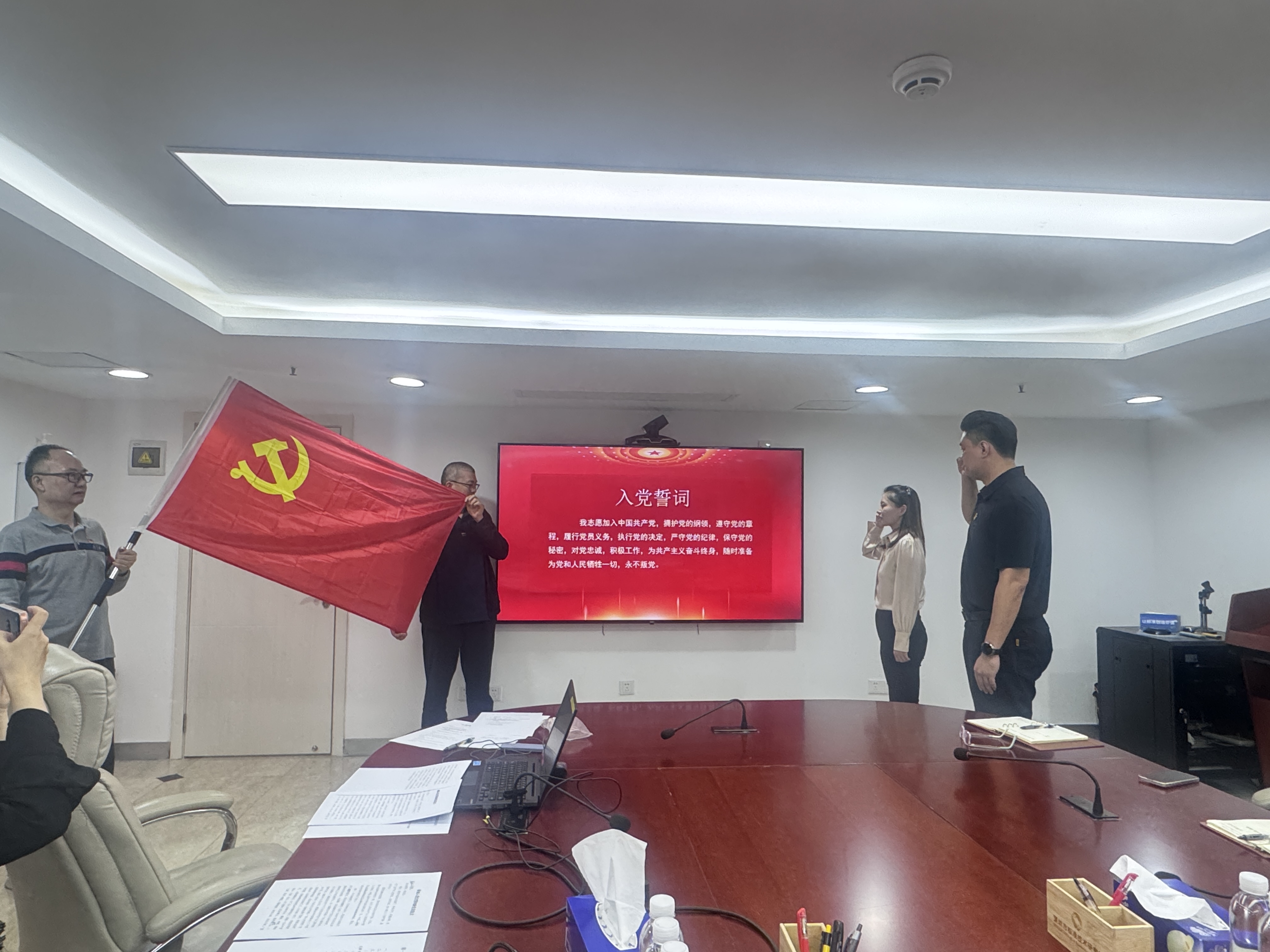 随后,会议进行了预备党员涂梦梅同志的入党宣誓仪式。在庄严的《国际歌》声中,涂梦梅同志在党旗下庄严宣誓,这既是对新党员一次深刻的党性教育,也激励着支部全体党员永葆初心、践行使命。