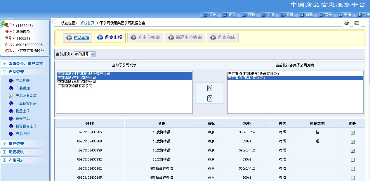 l  第五步,商品条码工作机构在“中国商品信息服务平台”初审子公司产品备案;